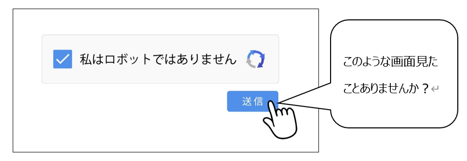 ●インターネットを閲覧していて、個人情報の入力をするときや、サイトにログインをするとき。またはクレジットカードの情報など重要な情報を入力するときに、パソコンを操作している人がロボットではないかの確認をするために「認証画面」を表示させます。 |