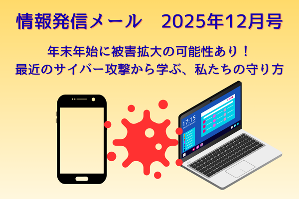 →「請求書」「宅配通知」「アカウントが停止されました」など嘘を装った偽メールが増えています。身に覚えのないメールは開かないことや、相手先のメールアドレスを確認しましょう。心配な場合は取引先に確認を行いましょう。年末年始にかけて、迷惑メールが増加する傾向があります。改めて注意をお願いします。